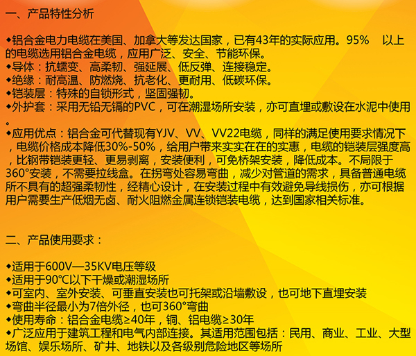 鋁合金電纜:鋁合金電纜ZR-YJLHV 瀏覽:3614